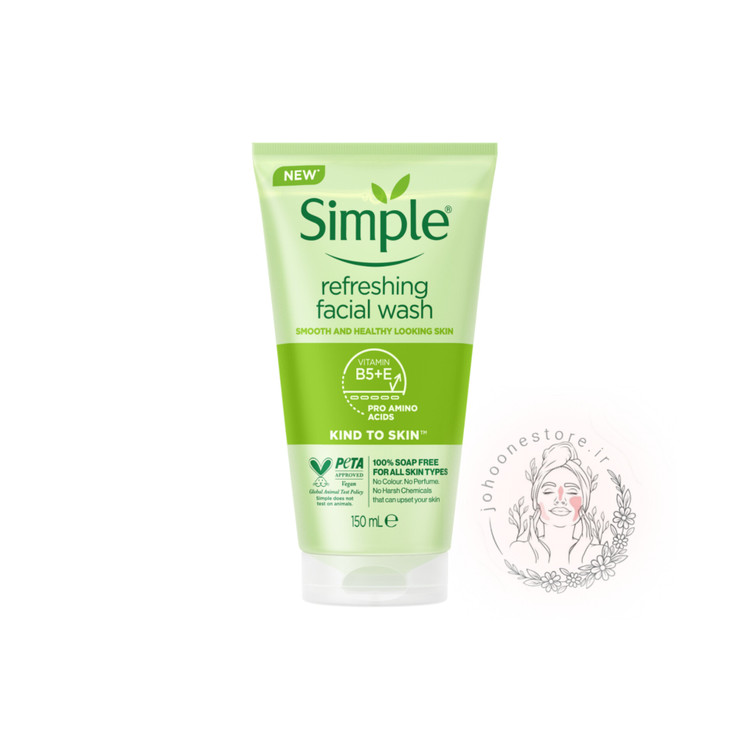 ژل شستشوی صورت refreshing سیمپل مدل Kind To Skin حاوی vitamin B5+E pro حجم 150 میل اصل انگلستان